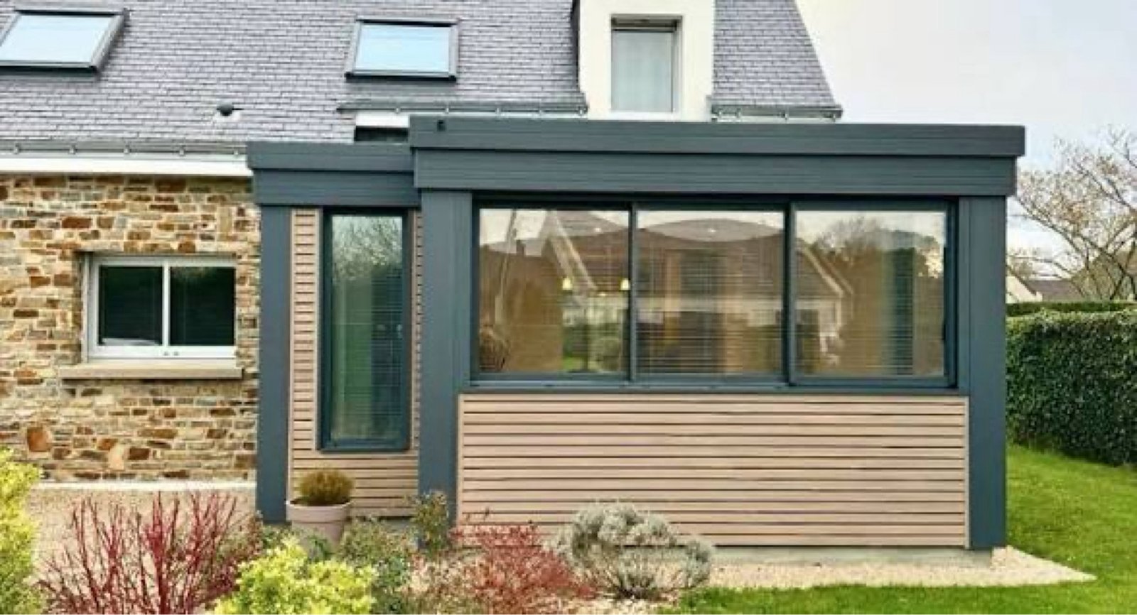 Nous réalisons des extensions toit plat intégrées à l’existant, avec fenêtres panoramiques et menuiseries adaptées pour maximiser la luminosité et le confort. L’intervention commence par une étude personnalisée, l’analyse de la façade et la proposition d’un chantier coordonné : fondations, ossature adaptée, pose de menuiseries coulissantes ou fixes en aluminium, et un habillage de façade harmonieux. Le choix d’un bardage horizontal clair associé à une structure sombre permet de créer un contraste contemporain qui valorise une maison en pierre ou en brique. En tant qu’artisans intervenant à Rouen et ses environs, nous prenons en charge les démarches administratives (déclaration préalable, conseils pour permis si nécessaire), la coordination des corps de métier et la livraison d’un chantier propre, prêt à vivre. Nous pouvons adapter le projet selon vos besoins : espace de vie, bureau, véranda isolée ou extension semi-vitree, en respectant les contraintes thermiques et esthétiques de votre quartier à Rouen, Le Havre ou Dieppe.