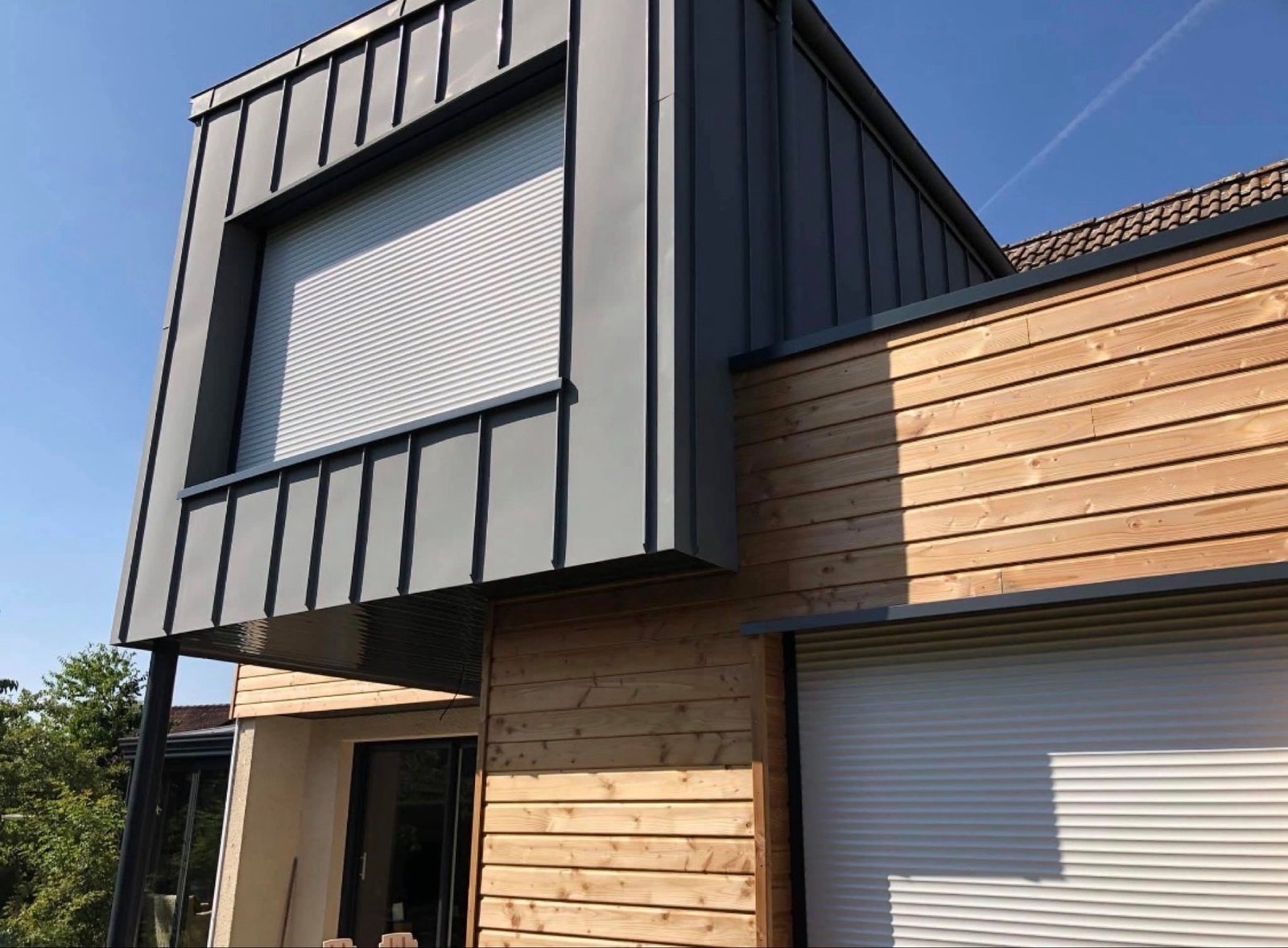 Nous travaillons avec des matériaux courants du bâtiment : bardage bois massif ou panneaux composites, habillages métalliques (zinc ou acier prépatiné), isolants thermiques adaptés, menuiseries aluminium ou PVC, et volets roulants intégrés ou coffres dissimulés pour une finition soignée.