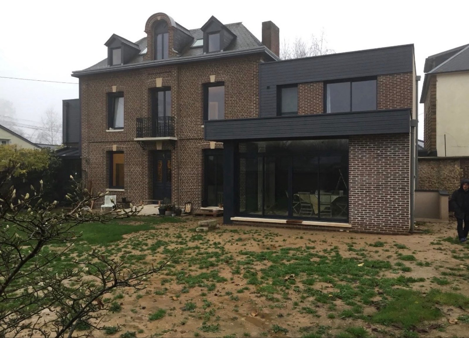 Nous réalisons des extensions de maison adaptées aux constructions traditionnelles en brique et aux projets modernes. Intervention artisanale complète, du diagnostic et des démarches administratives à la pose des menuiseries et à la finition des façades, nous prenons en charge le chantier selon vos besoins. Le projet type comprend la création d’une annexe à toit plat avec large baie vitrée coulissante, l’intégration d’un bardage sombre pour harmoniser le contraste entre la maçonnerie existante et le nouvel ajout, ainsi que l’isolation et la structure porteuse nécessaire à une liaison sûre entre l’ancien bâtiment et l’agrandissement. En tant qu’artisans, nous coordonnons les étapes : étude de faisabilité, métrés, obtention de la déclaration préalable ou du permis si nécessaire, préparation du chantier, gros œuvre, menuiseries et finitions intérieures. Nous intervenons régulièrement dans la région de Rouen et ses alentours, notamment à Darnétal et Mont-Saint-Aignan, ce qui facilite les interventions rapides et le suivi de chantier pour les propriétaires d’Isneauville.